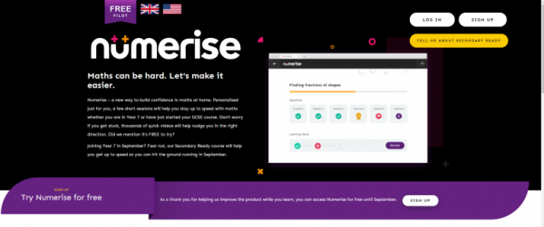 Numerise have made their Secondary Ready Online Course in maths freely available until September 1. It is designed to help prepare year 6 students starting in September as year 7 - click the image below to visit this great resource!