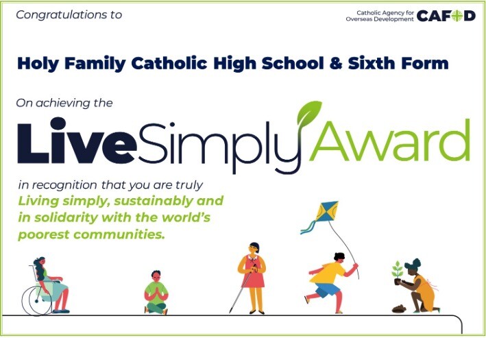 In January 2023, Holy Family achieved the LiveSimply Award - the first secondary school in the Diocese of Brentwood to achieve this.